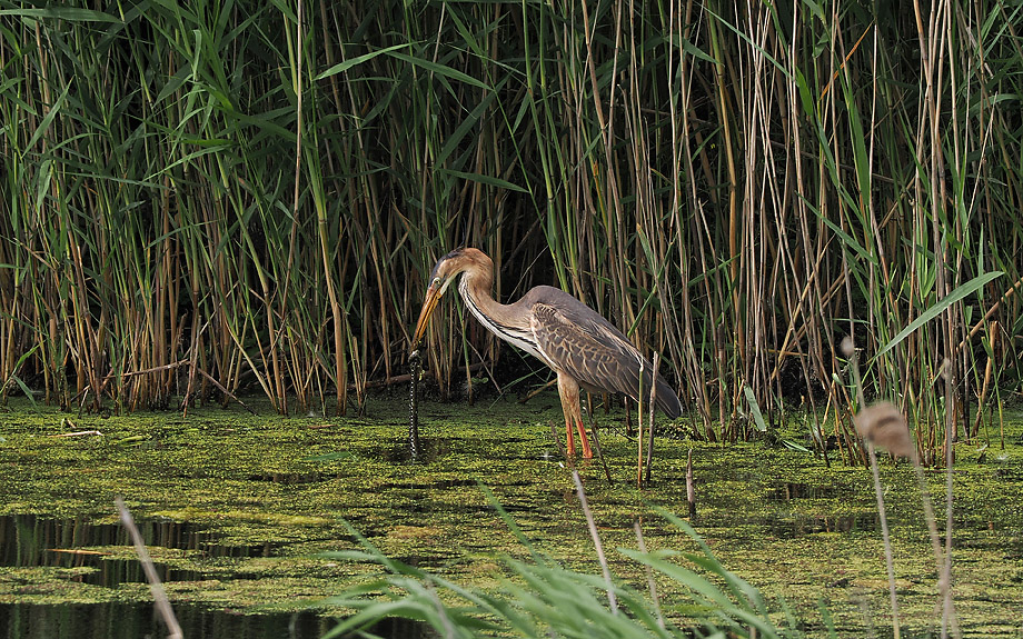 vermutlich musste der Reiher letztendlich auf seine Beute verzichen, weil die Schlange (Barren-Ringelnatter?) es geschafft hatte, sich im Laufe des Überlebenskampfes in der Unterwasservegetation zu verankern