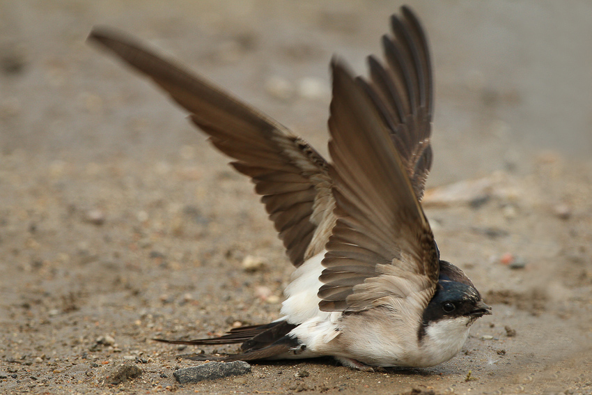"Killermehlschwalbe" fiel an der Schlammpfütze sowohl Artgenossen als auch Rauchschwalben an. Offenbar nicht ausgelastet?