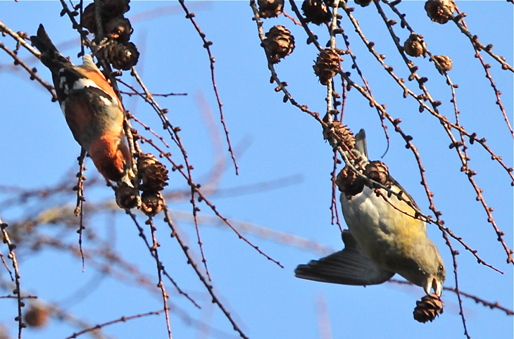 Der rechte Vogel ist ein Fichtenkreuzschnabel