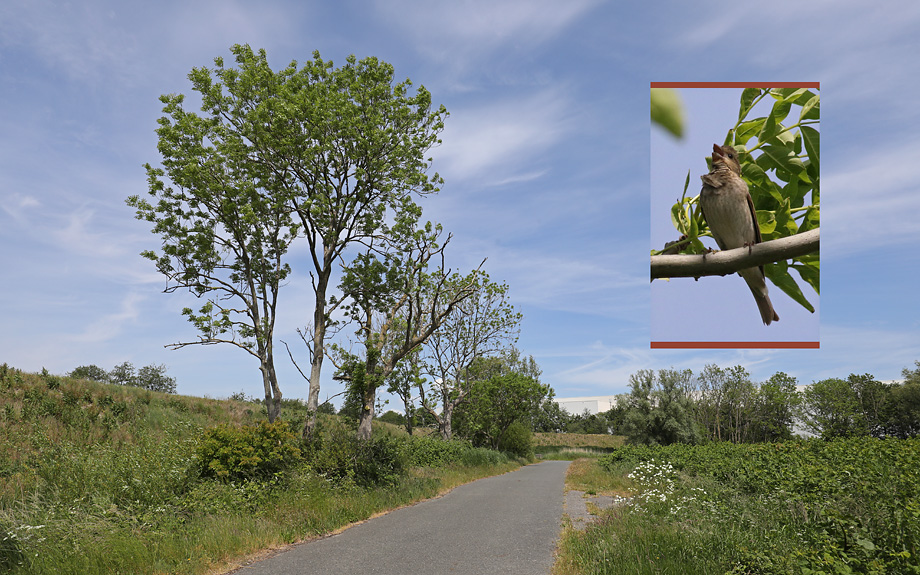 Bild 4 zeigt, dass der Vogel bei heftigem Wind durchaus Mühe hat, sich auf einer Singwarte zu halten.
