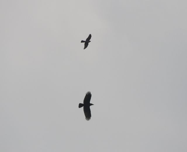 Turmfalke und Rabenkrähe flogen ung. 15 Minutene gegenseitige Angriffe.