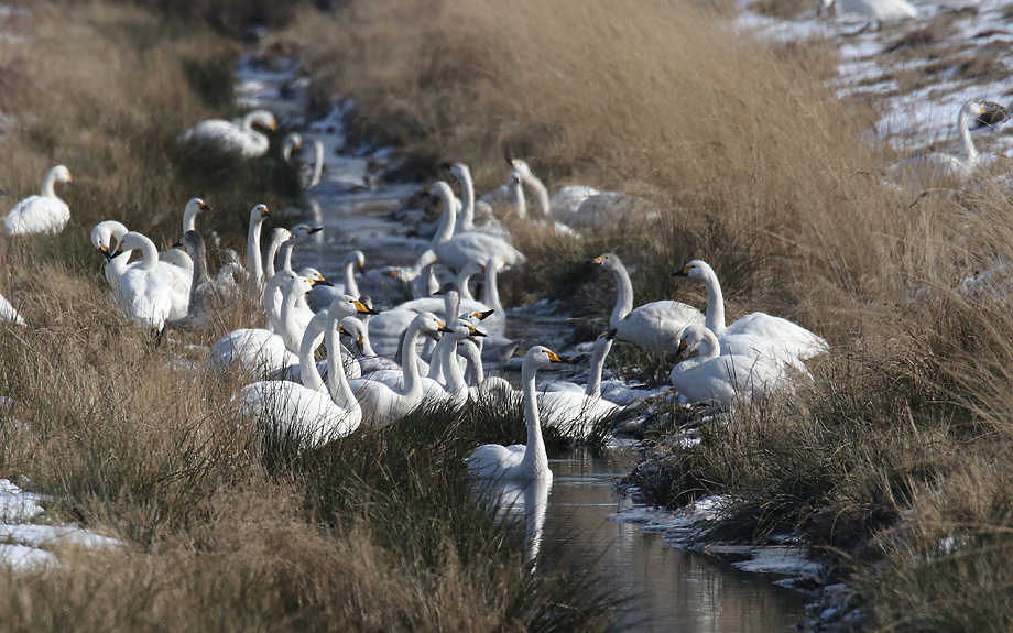 jeweils kleiner Ausschnitt von einem gemischten Trupp Zwerg/Singschwäne (über 400 Ex.)