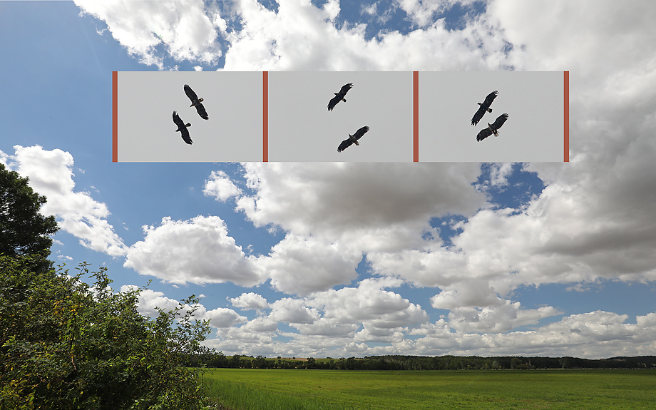 Bild 4 zeigt den Vogel, wie er fast genau vor einem Jahr ausgesehen hat (Montage:Teleaufnahmen in Landschaftsfoto eingefügt)