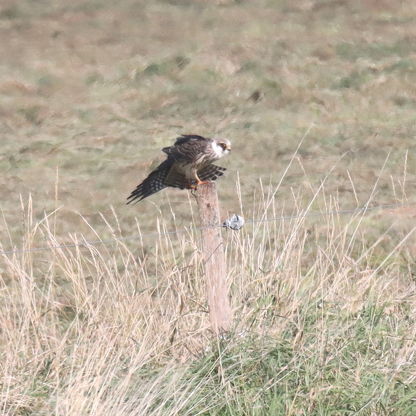 auf Weidepfahl, mit mehreren Turmfalken im Gebiet