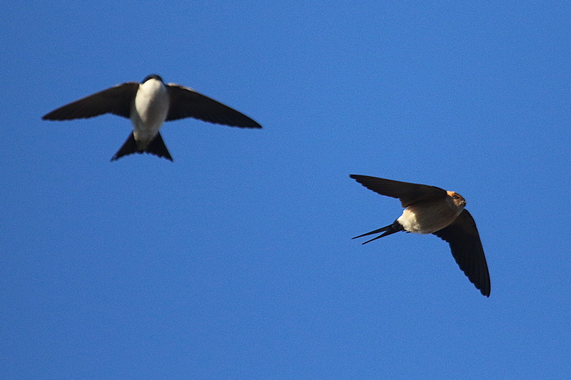 6. Tag in Folge vor Ort, mind. 3 Tag in Folge morgens im Ort auf Häusern, dann zum Unteren Kanppensee fliegend. 4 Schwalbenarten zusammen auf einer Hausantenne.
