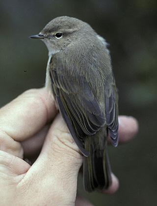 Plate 11: Chiffchaff Phylloscopus collybita showing characters of the Siberian form tristis, Fair Isle, Scotland, October 2004 (Rebecca Nason).