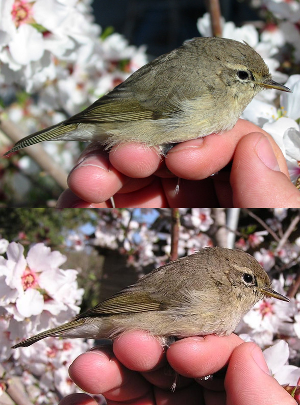 Plate 7a: 'Siberian Chiffchaff' Phylloscopus collybita tristis, Yerusalem, Israel, 26th February 2005 (upper: Itai Shanni, lower: Yael Lehnardt).
