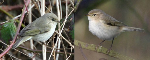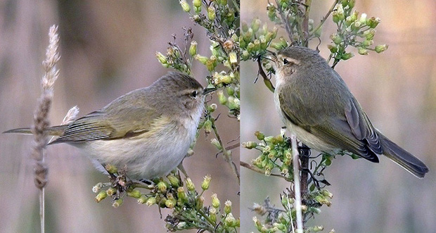 Plate 8a,b: Chiffchaff Phylloscopus collybita showing characters of the Siberian form tristis, Ile de Noirmoutier, Vendée, France, 25th November 2004 (Matthieu Vaslin).